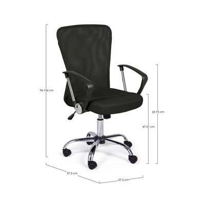 Polsterēts, ar riteņiem/ar regulējamu augstumu/ar roku balstiem, melns, slodze 110 kg, sēdekļa augstums 57-57 cm