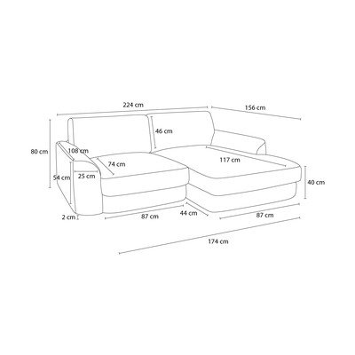 No šenila auduma, ar kreiso stūri/ar zvilni, melns, trīsvietīgs, platums 224 cm