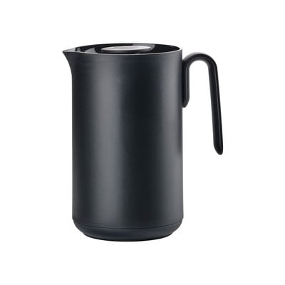 Melnais termoss Singles no Zone ir elegants aksesuārs kafijas cienītājiem. Tā ietilpība ir 1 litrs, un vienkāršais dizains nodrošina dzērienu karstumu, pateicoties stikla ieliktnim un PP iepakojumam. Praktiskais vāciņš ļauj viegli uzliet ūdeni bez skrūvēšanas. Sākotnējā temperatūra ir 95° C, bet pēc 6 stundām termoss var uzturēt 65–68° C temperatūru un pēc 10 stundām – 55–60° C temperatūru.