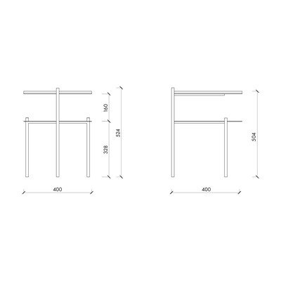 Naktsskapītis Tu no zīmola noo.ma. Divas novietošanas virsmas nodrošina pietiekami daudz vietas jūsu nepieciešamajām lietām.