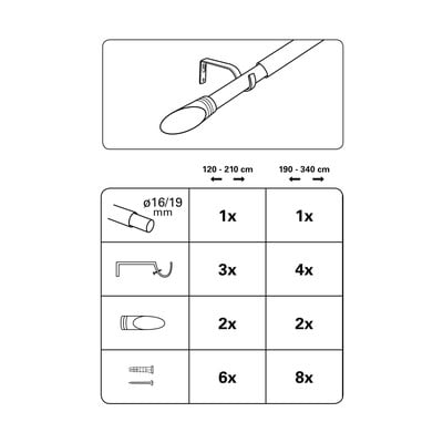 Pagarināma, metāla, sudraba krāsas, 120 - 210 cm