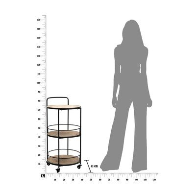 Pateicoties parocīgajam rokturim augšpusē un ritenīšiem, jūs varat to bez piepūles pārvietot, kur vien tas nepieciešams. Starp plauktiem ir pietiekami daudz vietas, proti, 30,5 cm, kas ir ideāli piemērots pudeļu, glāžu vai citu priekšmetu uzglabāšanai.