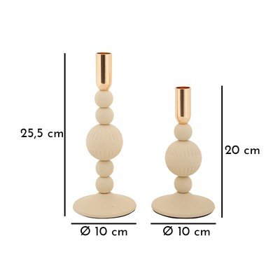 Viena svečtura diametrs ir 10 cm, bet augstums – 20 cm, savukārt otra svečtura diametrs ir 10 cm, bet augstums – 25,5 cm. Svečtura cauruma diametrs ir 2,5 cm. Pateicoties tā dizainam, tas ir lieliski piemērots elegantas atmosfēras radīšanai uz galda vai kumodes.