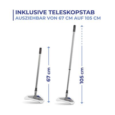 Ērtai lietošanai izvelkamajam rokturim var individuāli pielāgot garumu no 67 līdz 105 cm. Tas ļauj viegli sasniegt pat grūti aizsniedzamas vietas.