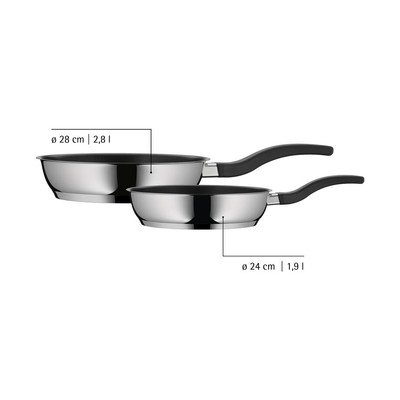 WMF pannas Devil ir praktisks papildinājums jebkurai virtuvei. Šajā komplektā ir divi gabali, kas atšķiras pēc izmēra – to diametrs ir 24 cm un 28 cm.