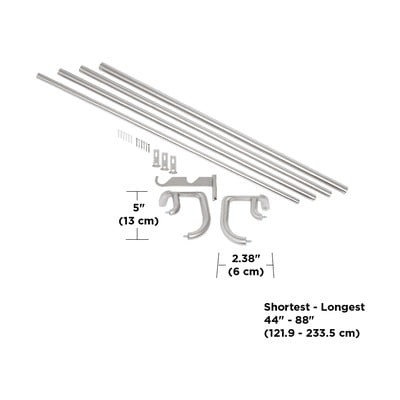 Aizkaru stienis nepaliek pa vidu, savienojošais vidējais stienis kustas kopā ar aizkaru.