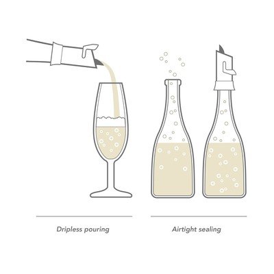 Ar šampanieša pudeļu korķi no VacuVin varat būt droši, ka jūsu šampanietis vai jebkurš dzirkstošais vīns saglabāsies svaigs ilgu laiku. Šis palīgs ir izstrādāts tā, lai droši aiztaisītu atvērto pudeli.