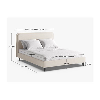 Pelēkbēša polsterēta divvietīga gulta ar redelēm 180x200 cm Aveline – Micadoni