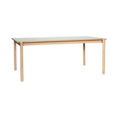 Tā virsma ir izgatavota no gluda linoleja, un tas stāv uz apaļām ozola masīvkoka kājām, kas tam piešķir tīru un stabilu izskatu. Tā izturīgais un stilīgais dizains padara šo galdu ideāli piemērotu ikdienai, un tas kļūs par ideālu vietu ģimenes maltītēm un svinīgām tikšanās reizēm.