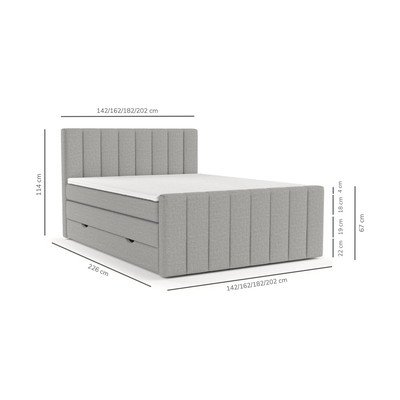 Atsperu gulta Ruby180x200 cm, ar veļas kasti, polsterēta, ar matraci/ar iekļautu matrača pārvalku, ar vieglu montāžu, pelēka