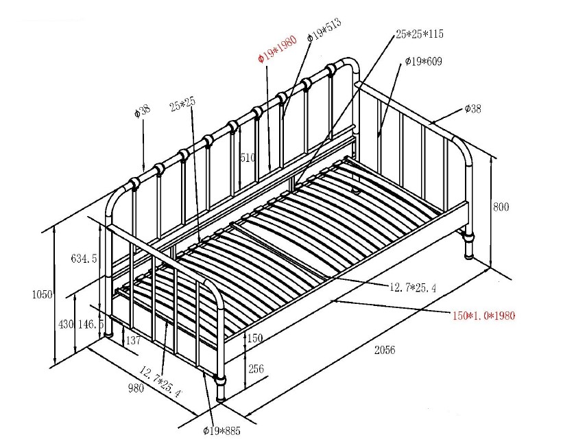 90x200 cm, ar redelēm, metāla, virsmas apdare: krāsa, pelēka