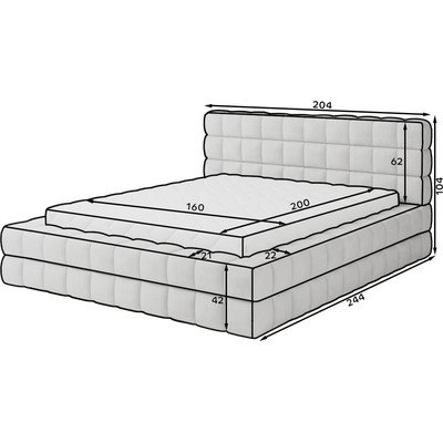 160x200 cm, ar veļas kasti, ar redelēm, polsterēta, no buklē auduma, pelēka