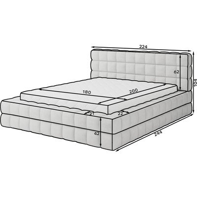 180x200 cm, ar veļas kasti, ar redelēm, polsterēta, no buklē auduma, pelēka