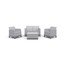 Krēslu izmēri ir 67,7 x 77,5 x 68 cm, bet dīvāna izmēri ir 124,5 x 77,5 x 73 cm (platums x dziļums x augstums). Komplektā ietilpst arī galds, kura izmēri ir 51,6 x 40 x 74,7 cm (platums x dziļums x augstums).