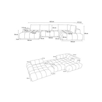No šenila auduma, salokāms/ar uzglabāšanas vietu, ar labo stūri/U veida, pelēkbrūns, vairākvietīgs, platums 423 cm