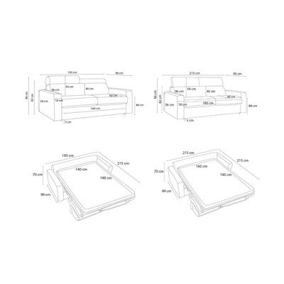 Velveta, gulēšanai/regulējams/salokāms, pelēks/brūns, divvietīgs, platums 195 cm