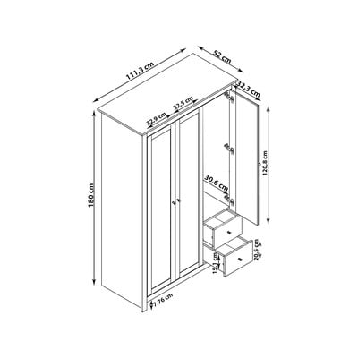 Ar ozolkoka imitāciju, no MDF, virsmas apdare: folija, pelēks, platums 112 cm, augstums 180 cm, dziļums 52 cm