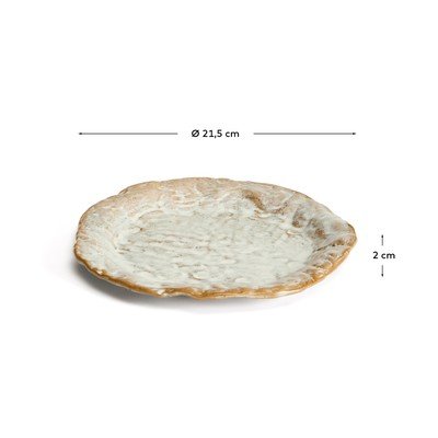 Alenia keramikas deserta šķīvim no Kave Home ir organiska un neregulāra forma, kas piešķirs jūsu maltītei atšķirīgu un modernu akcentu.