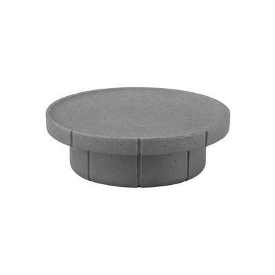 Dizainers iedvesmojies no kolonnas arhitektūras, kas atspoguļojas vienkāršā un masīvā formā ar vertikālām rievām. Šis tīrais, bet izteiksmīgais dizains ir raksturīgs visai sērijai un piešķir ziepju traukam elegantu izskatu, kas lieliski papildina izmantotā materiāla īpašības. Tas ir izgatavots no pārstrādāta poliresīna – materiāla, kas apvieno maltu akmeni un plastmasu, piešķirot tam augstu izturību un robustumu.