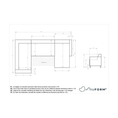 Salokāms/ar uzglabāšanas vietu, ar kreiso stūri/U veida, pelēks, vairākvietīgs, platums 330 cm