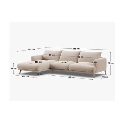 Bēšs samta stūra dīvāns (ar kreiso stūri/ar zvilni) Naomi – Micadoni