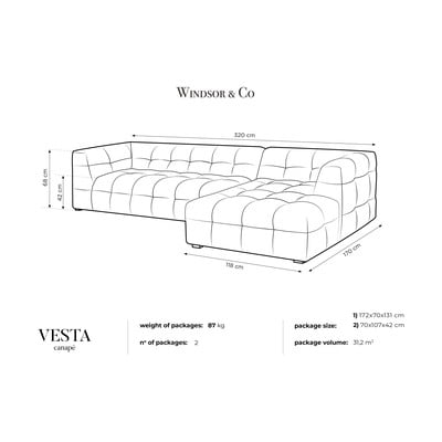 Ja jums ir nepieciešams dīvāns, uz kura var izvietot draugu kompāniju, Windsor & Co Sofas Vesta ir īstais risinājums. Šim stūra dīvānam ar mīkstu materiālu cita starpā ir apstrādāta virsma, kas to pasargā no šķidrumiem. Tā elegantais izskats piešķirs interjeram pikantumu. Tajā pašā laikā to var viegli saskaņot ar pārējām mēbelēm.