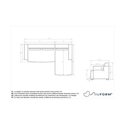 Ar labo stūri/ar zvilniTumši pelēksTrīsvietīgsPlatums 264 cm
