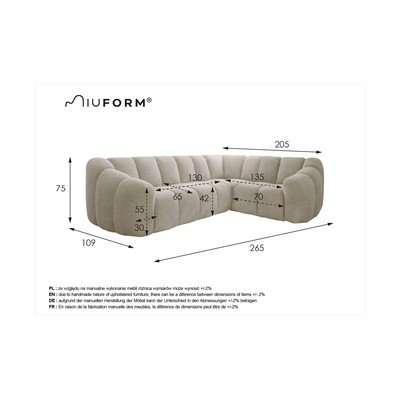 Bēšs stūra dīvāns (ar labo stūri/L veida) Shell – Miuform