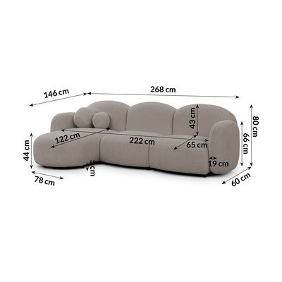 Krēmkrāsas stūra dīvāns no buklē auduma (ar kreiso stūri/ar zvilni) Orbit – Ropez