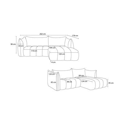 Balts stūra dīvāns no buklē auduma (ar labo stūri/ar zvilni) Azra – Bobochic Paris