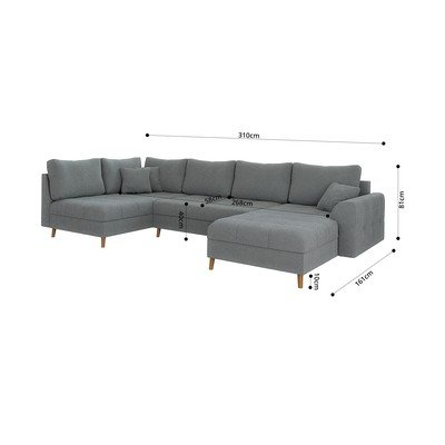 No buklē auduma, ar labo stūri/U veida, pelēks, vairākvietīgs, platums 310 cm