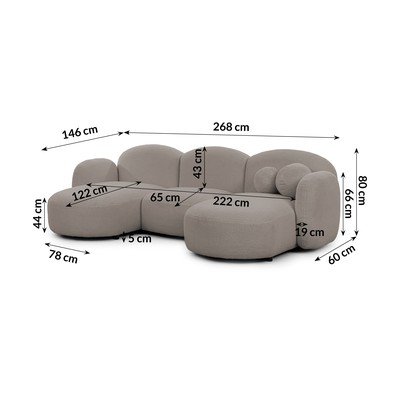 Krēmkrāsas stūra dīvāns no buklē auduma (U veida) Orbit – Ropez