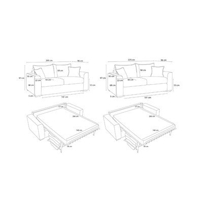Velveta, gulēšanai/salokāms, pelēks, trīsvietīgs, platums 225 cm