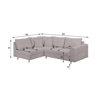 Krēmkrāsas velveta stūra dīvāns (ar kreiso stūri) Ariella – Ropez