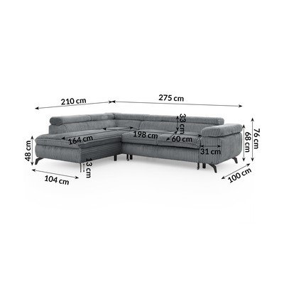 VelvetaRegulējams/salokāms/ar uzglabāšanas vietuAr kreiso stūri/L veidaPelēksMājdzīvniekiem piemērots/pret traipiem noturīgsČetrvietīgsPlatums 275 cm