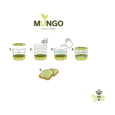 Mungo diedzēšanas trauks ir īpaši izstrādāts vieglai sēklu, riekstu vai pākšaugu diedzēšanai. Tas ir sadalīts trīs atsevišķos līmeņos, kas ļauj vienlaicīgi diedzēt līdz pat 3 dažādām sēklām.