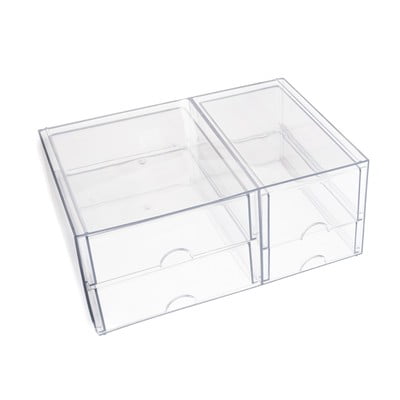 Organizators ir sadalīts divās daļās, kas atrodas viens otram blakus. Katrā sadaļā ir divas izvelkamas atvilktnes, kurām ir ērts pusapaļš izgriezums, lai tās būtu viegli atvērt.