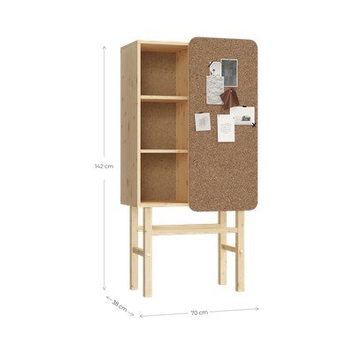 Ar bīdāmām durvīm, priedes masīvkoka, virsmas apdare: bez apstrādes, dabīga toņa, platums 70 cm, augstums 142 cm, dziļums 38 cm