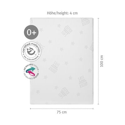 Bērnu matracis Safe Asleep®75x100 cm, ar noņemamu pārklāju, putu, biezums 4 cm
