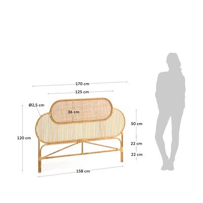 Gultas galvgalis LalitaRotangpalmas, virsmas apdare: lakošana, brīvi stāvošs, dabīga toņa, 170x120 cm