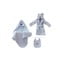 Šajā Unicorn komplektā ietilpst halāts, kas piemērots bērniem no dzimšanas līdz divu gadu vecumam, vannas dvielis ar kapuci, kura izmēri ir 70 x 70 cm, un 25 x 25 cm liels krūšautiņš.