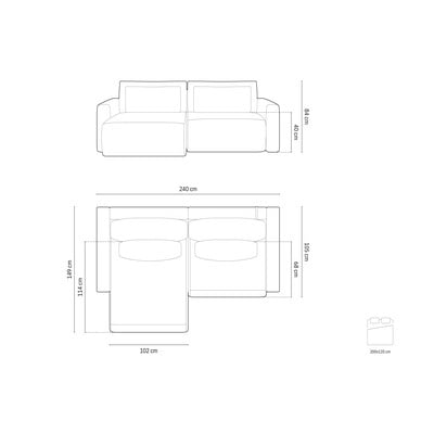 Salokāms/ar uzglabāšanas vietu, ar labo stūri/ar kreiso stūri/ar maināmu stūri/ar zvilni, rozā, trīsvietīgs, platums 240 cm