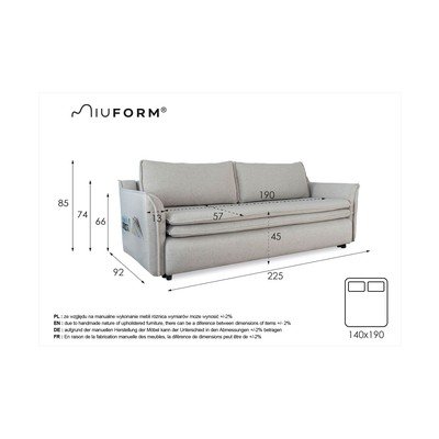 Piezīme: sēdekļa spilvena augstums, kad dīvāns ir izvilkts, ir 40 cm, un matrača biezums, kad dīvāns ir izvērsts, ir 7,5 cm. Augšējais matracis ir izgatavots no putām.