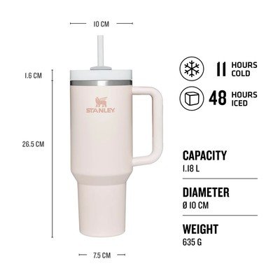 Stanley termoss Quencher H2.O FlowState ar salmiņu ir lielisks ceļojuma biedrs. Pateicoties tā mīkstai virsmai, to ir viegli turēt rokās, un tas piedāvā izsmalcinātu izskatu.