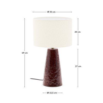 Kave Home galda lampa Drava pārsteidz ar konusveida glazētas keramikas pamatni ar faktūras efektu. Cilindriskais kokvilnas abažūrs maigi filtrē gaismu, palīdzot radīt mājīgu un līdzsvarotu atmosfēru jebkurā telpā.