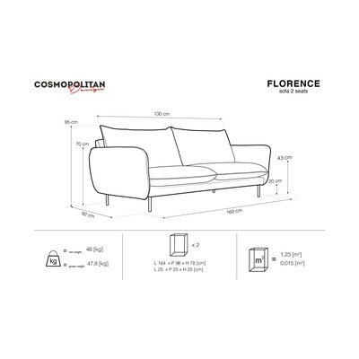 Dīvāns "Florence" no Cosmopolitan Designļaus jums izbaudīt komfortu, ko nodrošina precīzi veidota konstrukcija un ērts polsterējums. Apdare ir izgatavota no patīkama samta, taču tajā pašā laikā dīvānam ir augsta Martindale vērtība.