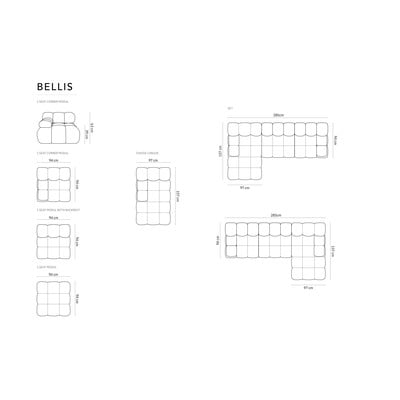 Melns samta dīvāns 285 cm Bellis – Micadoni Home
