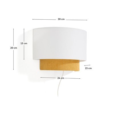 Kave Home sienas lampa Bianella ir līdzsvarota un mūsdienīga dizaina. Tai ir dubults abažūrs no smalka velveta un kokvilnas, kas mīkstina gaismu un palīdz radīt mājīgu atmosfēru jebkurā telpā.