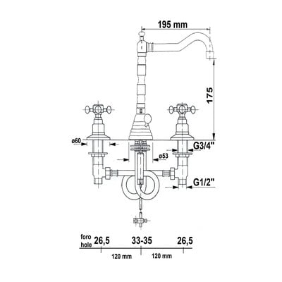 Šis trīs elementu izlietnes krāns ar krāna vadību pārsteidz ar savu retro dizainu. Tam ir G 1/2" savienojums. Papildus tam komplektācijā atradīsiet arī elastīgu padeves šļūteni un slēdzamu izvadu.