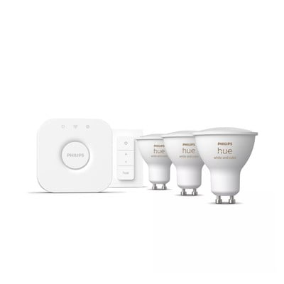 Šajā Philips Hue starta komplektā ir viss nepieciešamais, lai mājās izveidotu viedo apgaismojumu. Komplektā ietilpst Hue Bridge, trīs viedās spuldzes un gaismas intensitātes regulēšanas slēdzis, kas ļauj jums uzreiz sākt kontrolēt vēlamo apgaismojumu.